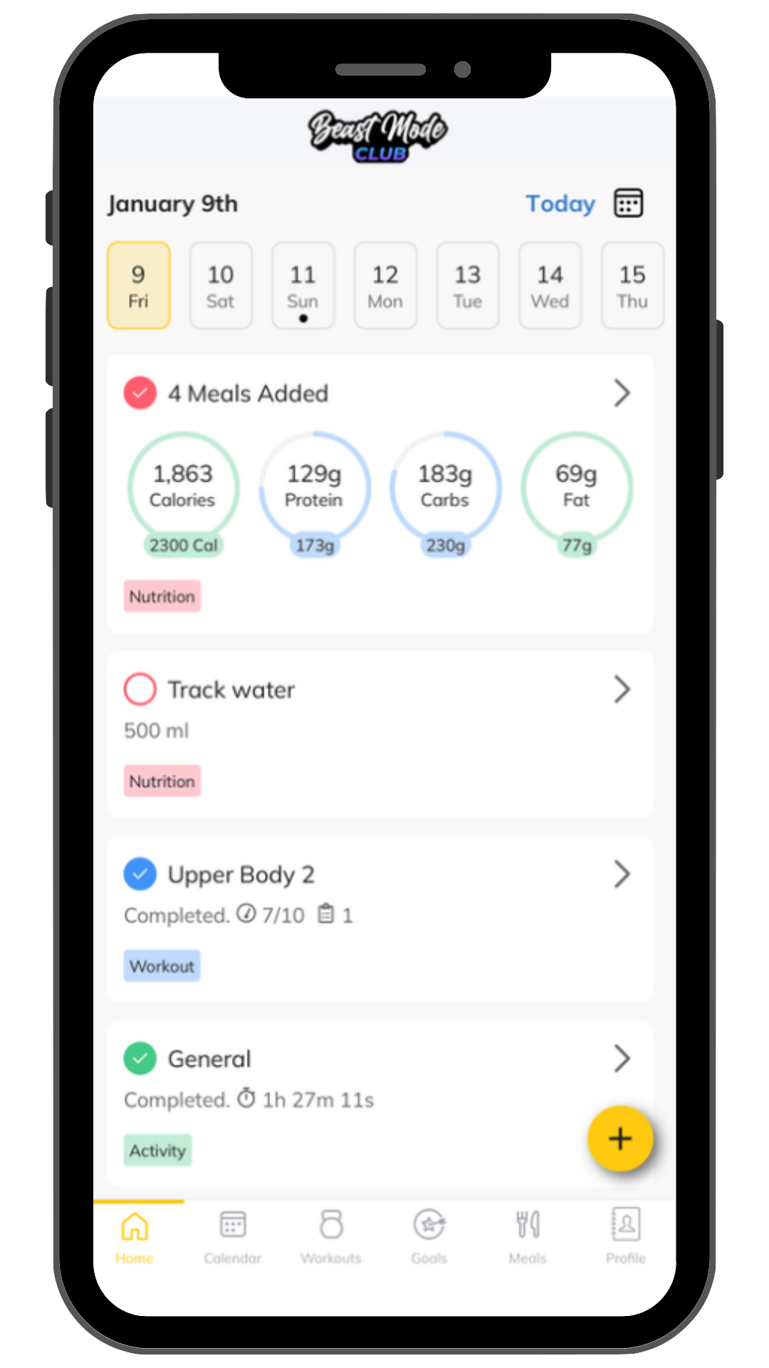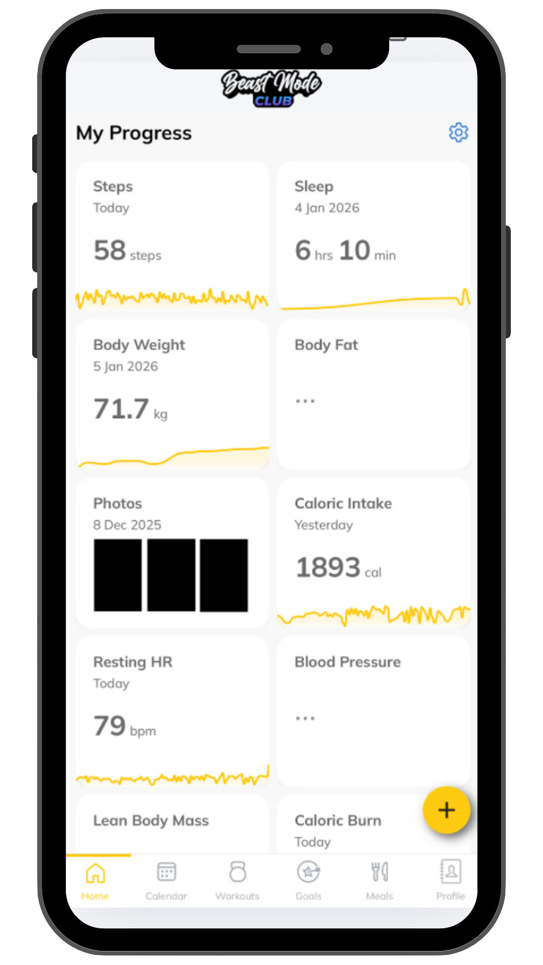 I’ll assess your movement, take baseline metrics, and progress photos. You’ll then receive your login to the Beast Mode Club App—where your journey officially begins.